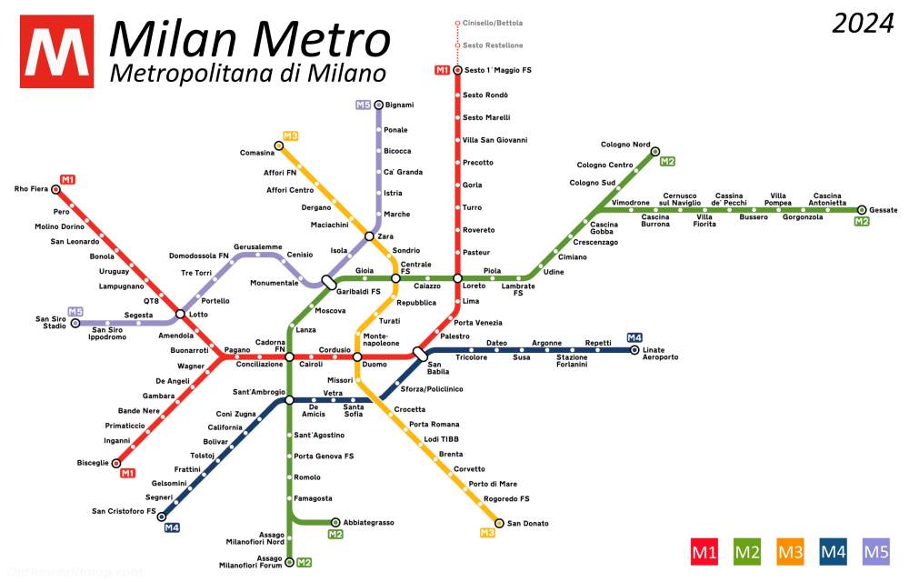 Each metro line in Milan is identified by a number and a color, which makes navigation intuitive.