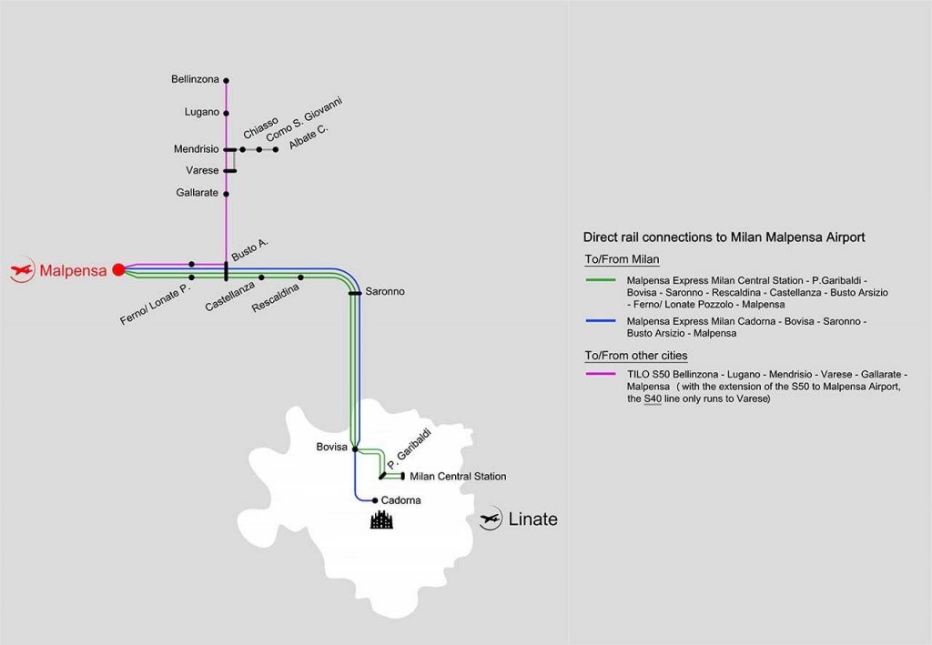 Malpensa Airport is about 45 km from central Milan, but it is well connected by both public and private transport.